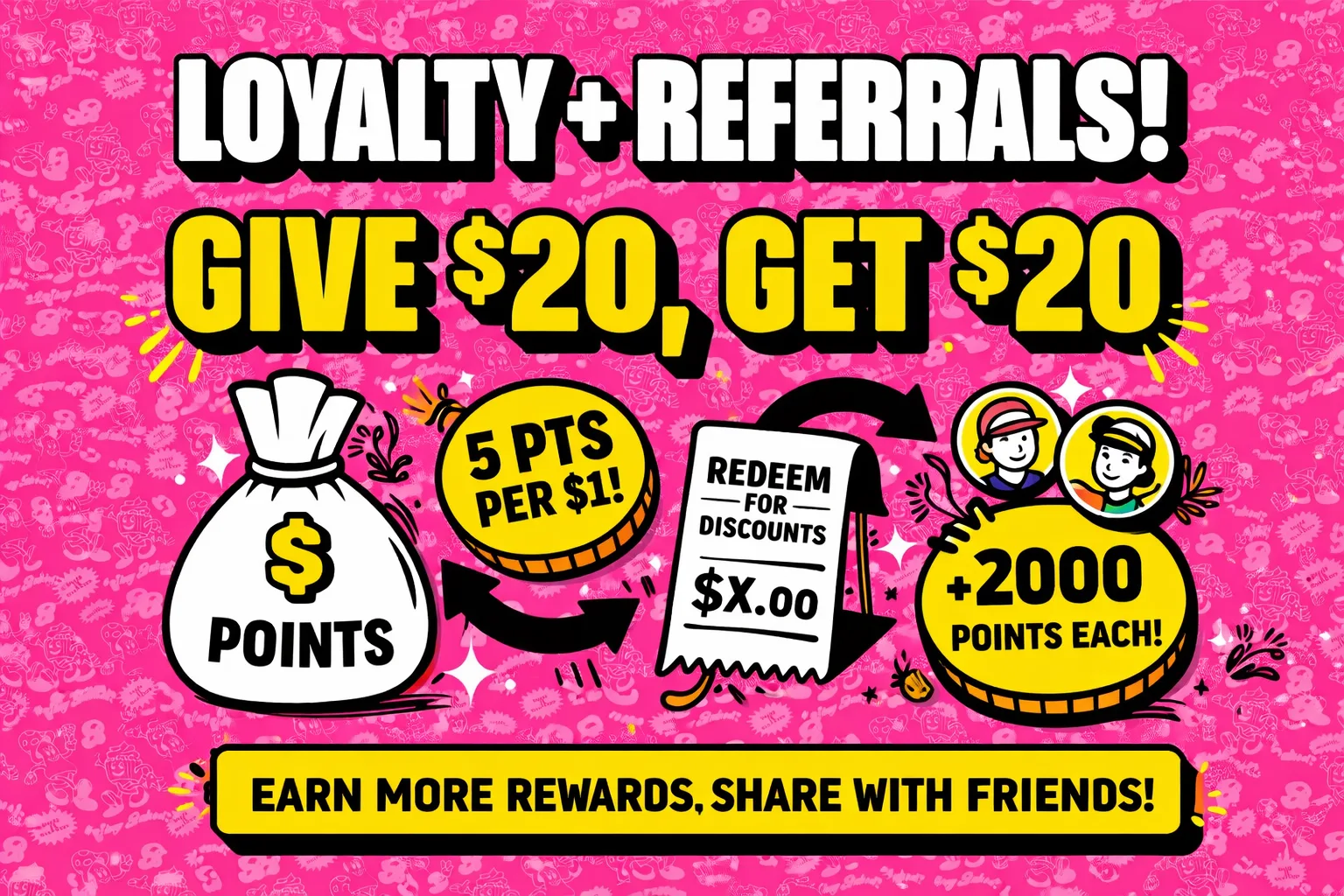 GIVE $20 • GET $20 • 2000 POINTS EACH • SHARE YOUR LINK •